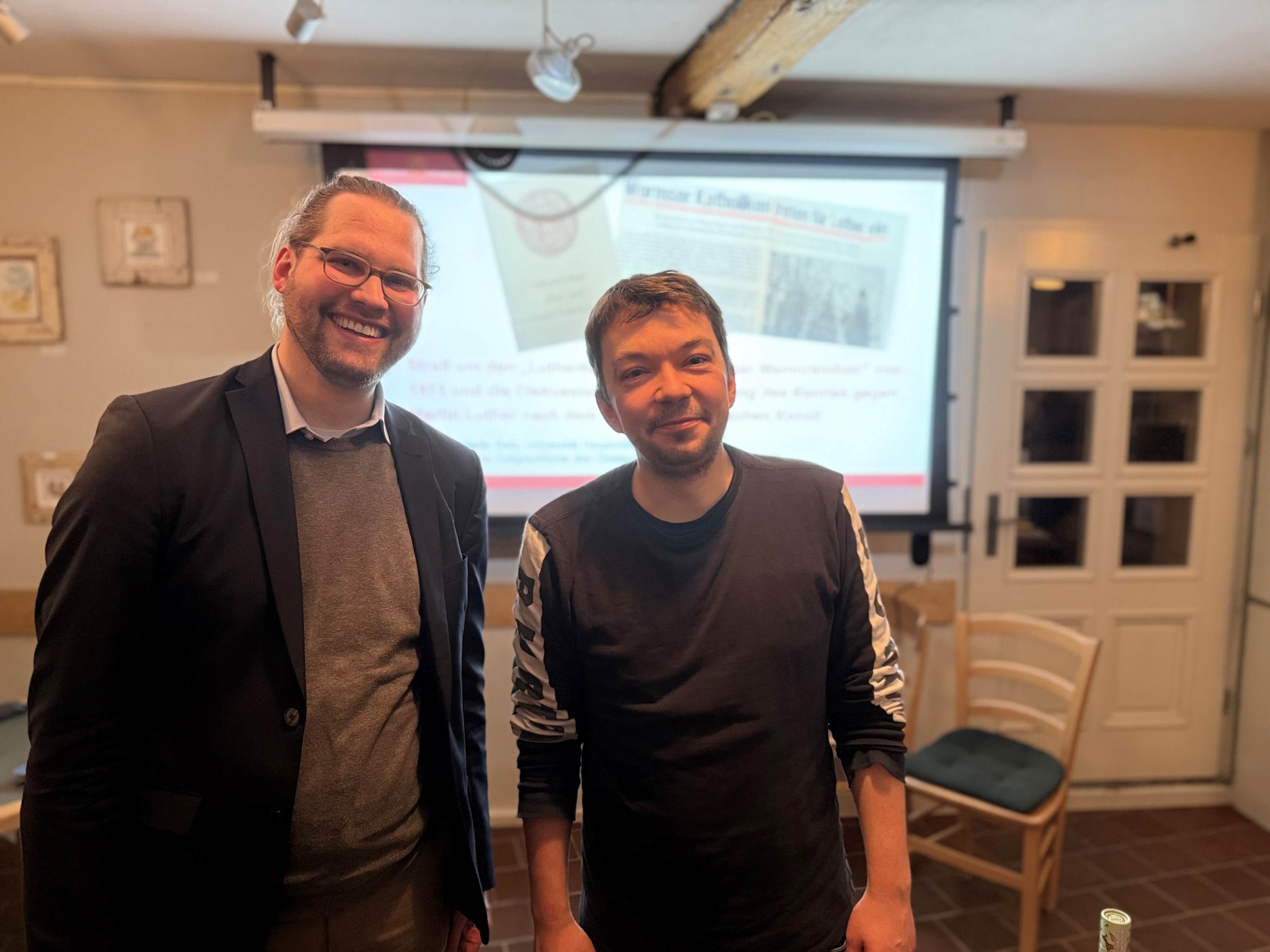 Prof. Dr. Martin Belz (Universität Osnabrück) mit Dr. Ringo Müller (Universität Erfurt) nach dem Vortrag (c) Universität Erfurt / Universität Osnabrück