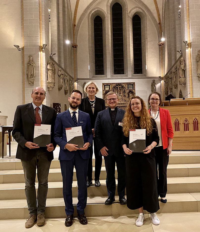 Prof. Dr. Miloš Lichner, Universität Trnava, Bratislava, Slowakei; Bischof Dr. Franz-Josef Bode, Bistum Osnabrück; Prof. Dr. Margit Eckholt, Universität Osnabrück, ESCT-Präsidentin; Prof. Dr. Susanne Menzel-Riedl, Präsidentin der Universität Osnabrück; Prof. Dr. Marie-Jo Thiel, Universität Straßburg, Frankreich; Bischof Dr. Franz-Josef Overbeck, Bistum Essen. (von links)