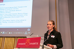 Prof. Dr. Susanne Menzel-Riedl, Präsidentin der Universität Osnabrück, sprach ein Grußwort und hielt einen Vortrag im Rahmen des Eröffnungspodiums, in dem sie aus ihrer wissenschaftlichen Perspektive der Biologiedidaktik auf die aktuellen ökologischen Herausforderungen einging.