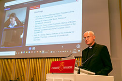 Bischof Dr. Overbeck, Bistum Essen, brachte mit seinem Vortrag als Vizepräsident der COMECE und als Vorsitzender der Kommission für gesellschaftliche und soziale Fragen der Deutschen Bischofskonferenz die kirchliche Perspektive in das Eröffnungspodium ein und knüpfte an die ökologischen Arbeitspapiere der katholischen Bischöfe an.